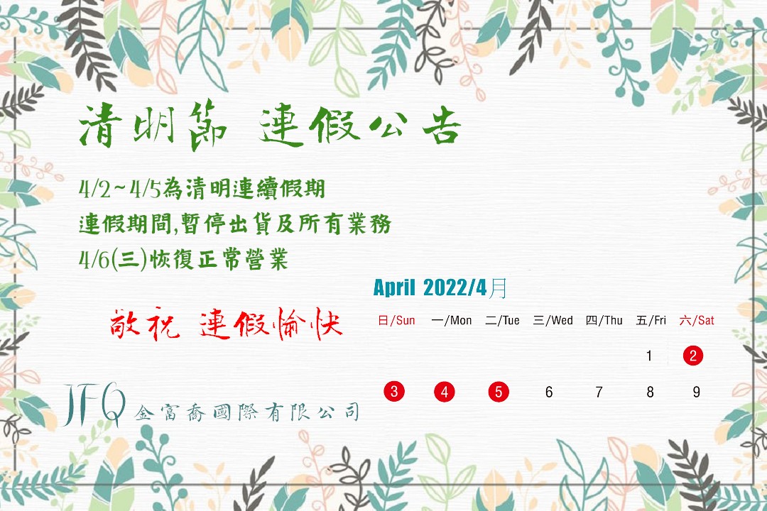 清明連假公告 - 最新消息 - 金富喬國際有限公司