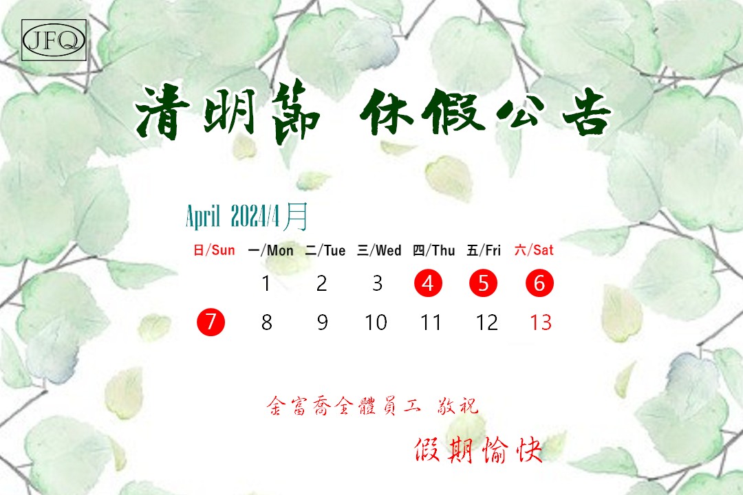 休假公告 - 最新消息 - 金富喬國際有限公司